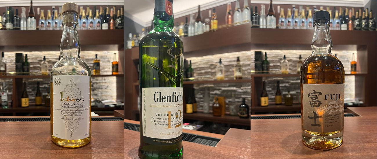 ウイスキー(山崎、白州、碧、知多、竹鶴、富士、サントリー角、ジャックダニエル、イチローズモルト白・赤、ラフロイグ10年、ボウモア12年、アードベック10年、マッカラン12年)